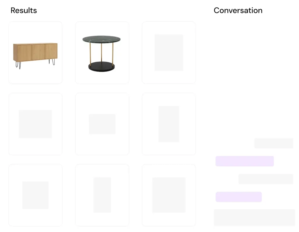 In a conversational search, the user speaks in natural language (e.g., “I'm looking for a communion dress, what do you recommend?”) and the search engine responds like a sales assistant: it asks questions, shows products, asks more questions, and shows more products, maintaining a conversation that guides the user to the most suitable product.