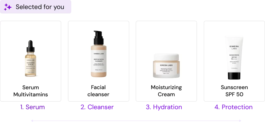 If you add a serum, we suggest compatible cleanser, cream, and SPF. Less indecision, higher average ticket price, and fewer returns.