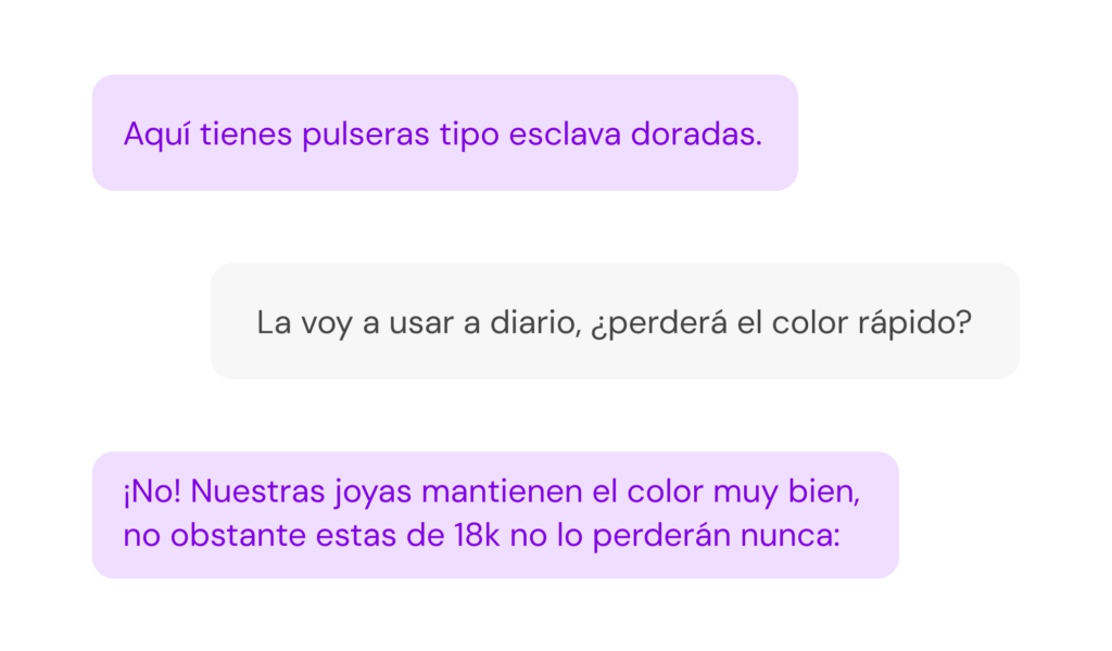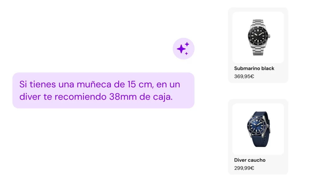 IA Conversacional para eCommerce de Moda, Joyería y Accesorios Kimera actúa como un vendedor dentro de tu buscador, guiando a los clientes al producto que necesitan de forma fluida Búsqueda en lenguaje natural Asesora a tus clientes con conocimiento total del producto Guía la compra sin fricciones Solicita una demo Ver casos de uso → Confían en Kimera Lo que hace difícil comprar moda, joyería y accesorios online El usuario necesita ayuda para elegir y encontrar los productos, hasta ahora no había un canal que solucionara estos problemas: No sé si es apropiado No sabe qué ponerse para una ocasión determinada. Dudas sobre el uso No sabe qué puede o no hacer con el producto. Asesoramiento técnico No sabe qué producto es el que mejor se adapta a sus necesidades Encuentra por descripciones Pueden pedir lo que quieren como lo harían con un dependiente Solicita una demo Casos de uso Destacados En preparación Cuando el cliente no sabe el nombre del producto Encuentra los productos sin saber su nombre a través de preguntas clave Ver caso de uso → Maridaje perfecto en segundos El usuario dice el plato o menú, Kimera sugiere vinos y productos gourmet que encajan, con alternativas por presupuesto. Ver caso de uso → Combinar prendas “Quiero una blusa que pegue con este pantalón” Próximamente Regalo adecuado “Quiero regalar algo que tenga significado sentimental.” Próximamente Rematar el look “Quiero un accesorio que le de punch a este outfit” Próximamente Piel sensible Busca materiales adecuados para alergias sin usar tecnicismos. Próximamente Mejora la conversión Más usuarios eligen el producto ideal a la primera Más compras con confianza Más usuarios compran tras resolver sus dudas al instante Mayor ticket medio Se añaden maridajes y complementos recomendados. Menos devoluciones Se alinean expectativas explicando estilo y perfil antes de pagar El mejor asistente para tu tienda online Ahora sí puedes asesorar, guiar y resolver dudas para convertir más. Solicita una demo